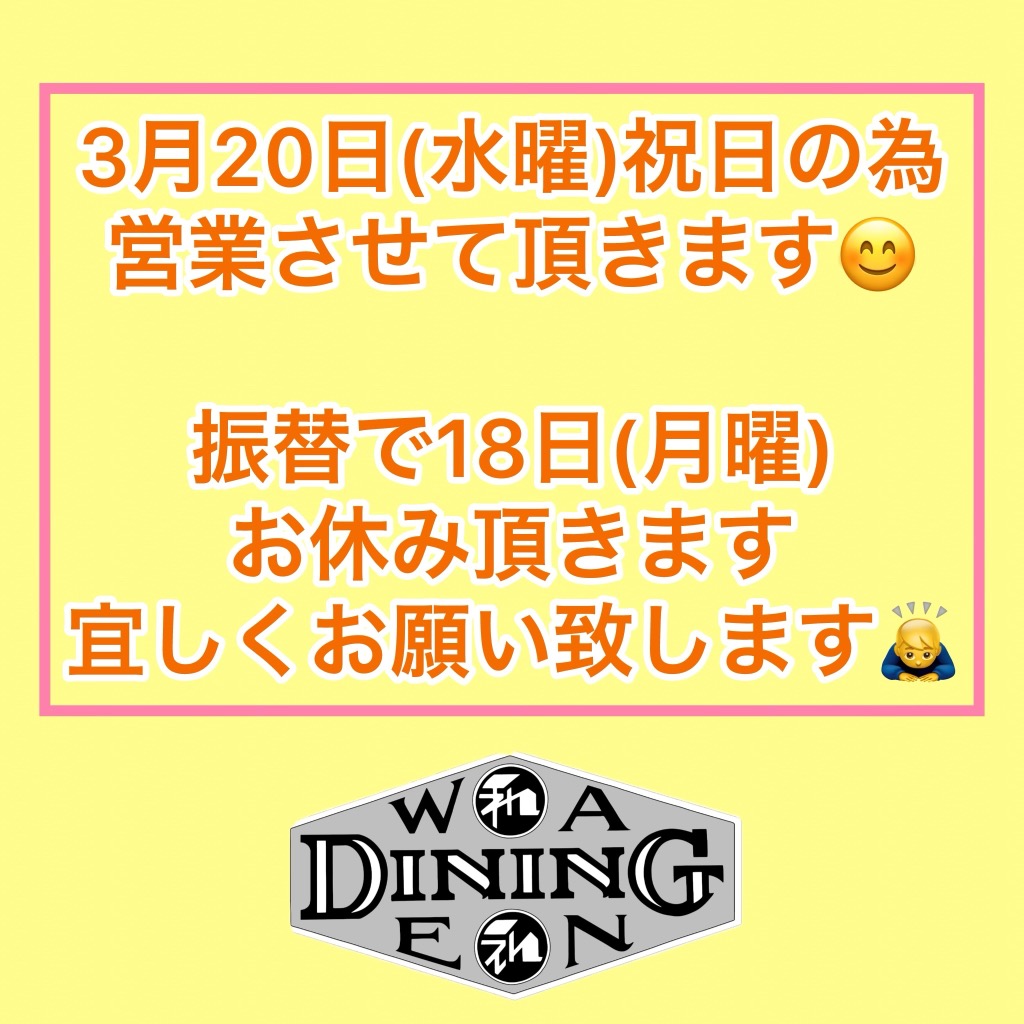 3月20日(水曜日)営業します🙆‍♂️‼️‼️