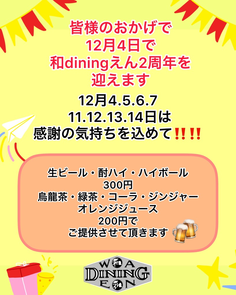 和歌山市で居酒屋・ダイニングバーをなら、“和diningえん”をご利用ください。