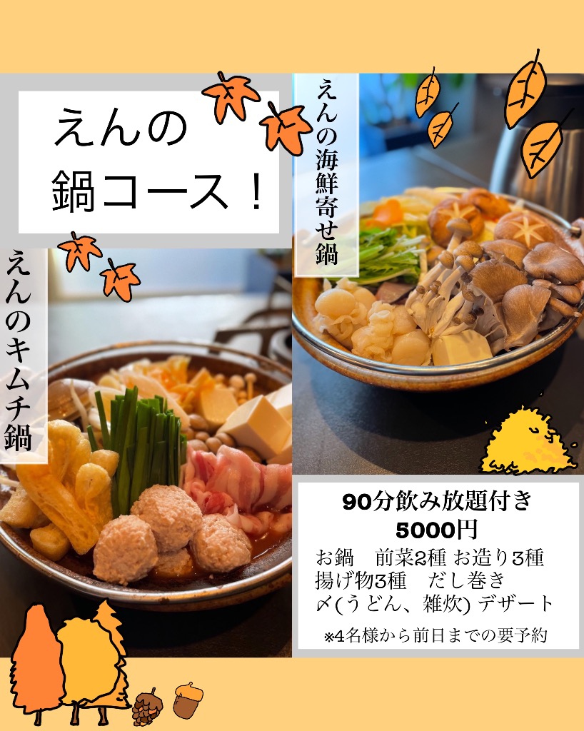 えんの[海鮮寄せ鍋] [キムチ鍋]の2種類‼️