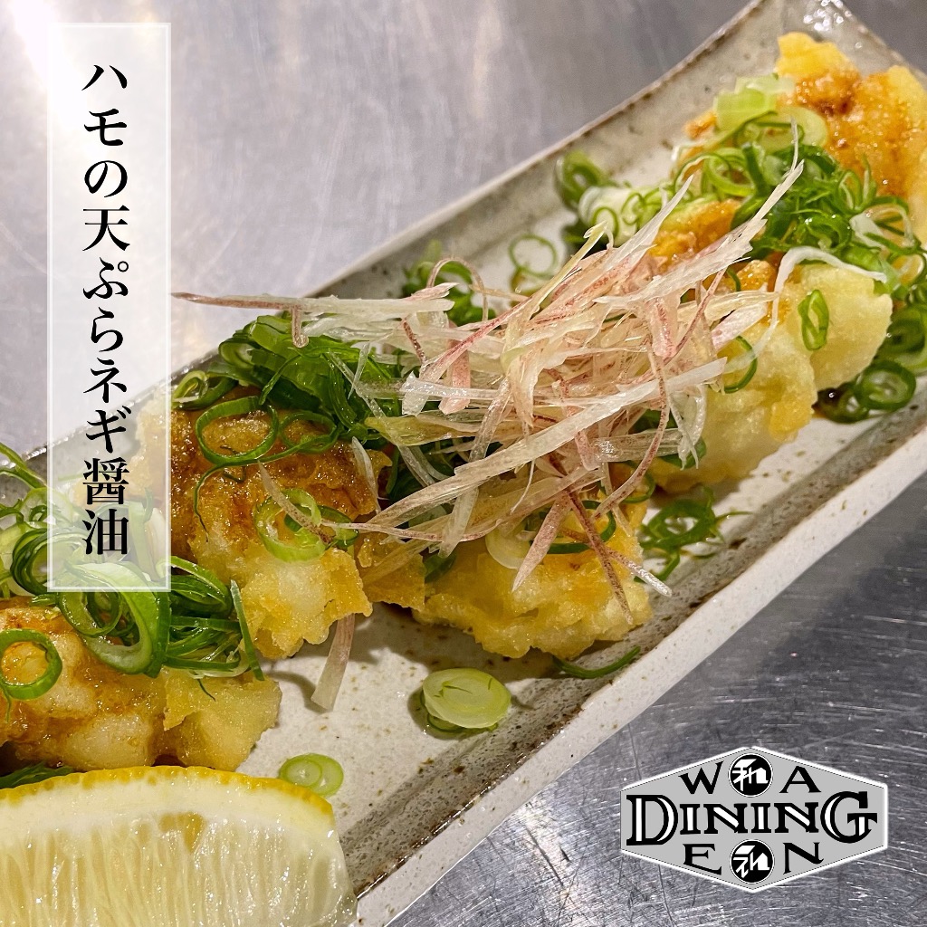 本日のご紹介は[ハモの天ぷらネギ醤油]です👏👏