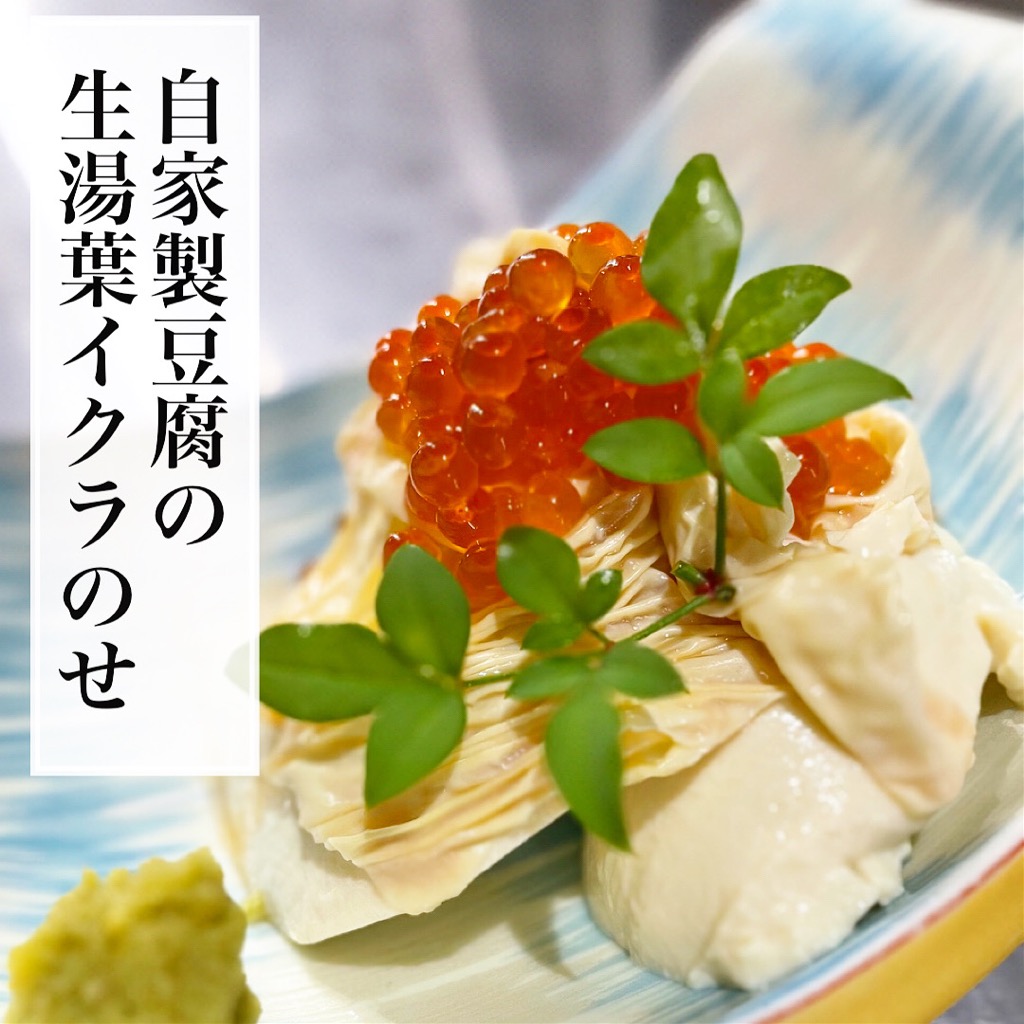 えんの自家製豆腐に生湯葉とイクラをのせ!