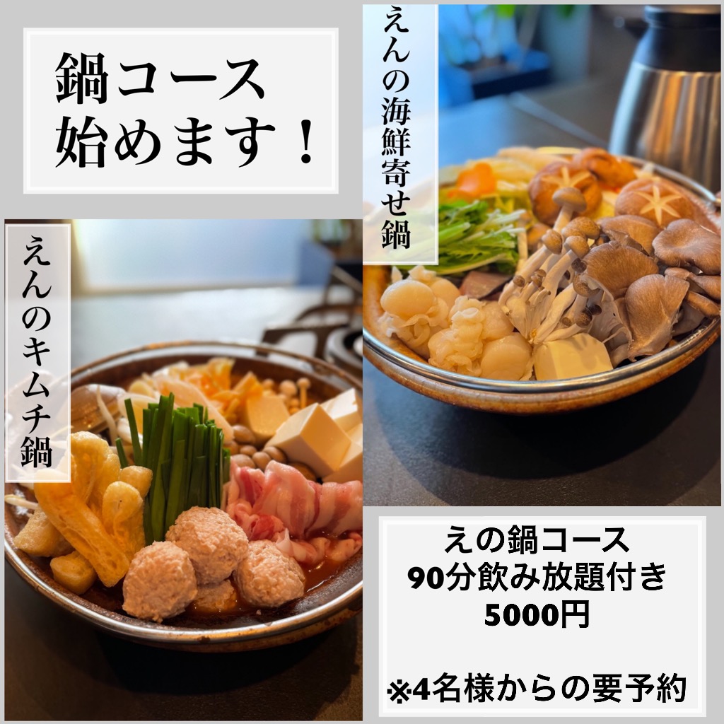 えんの海鮮寄せ鍋、キムチ鍋の2種!