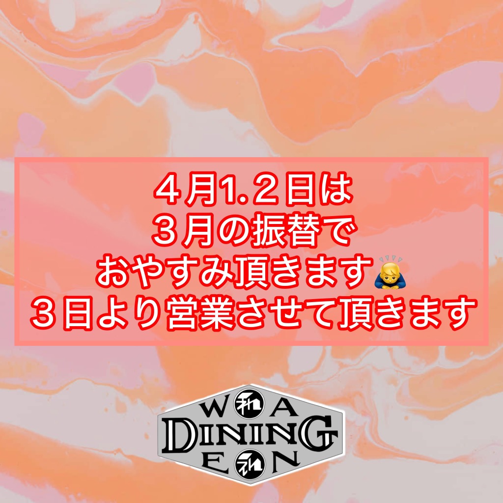 4月1.2日は連休とさせて頂きます🙇‍♂️